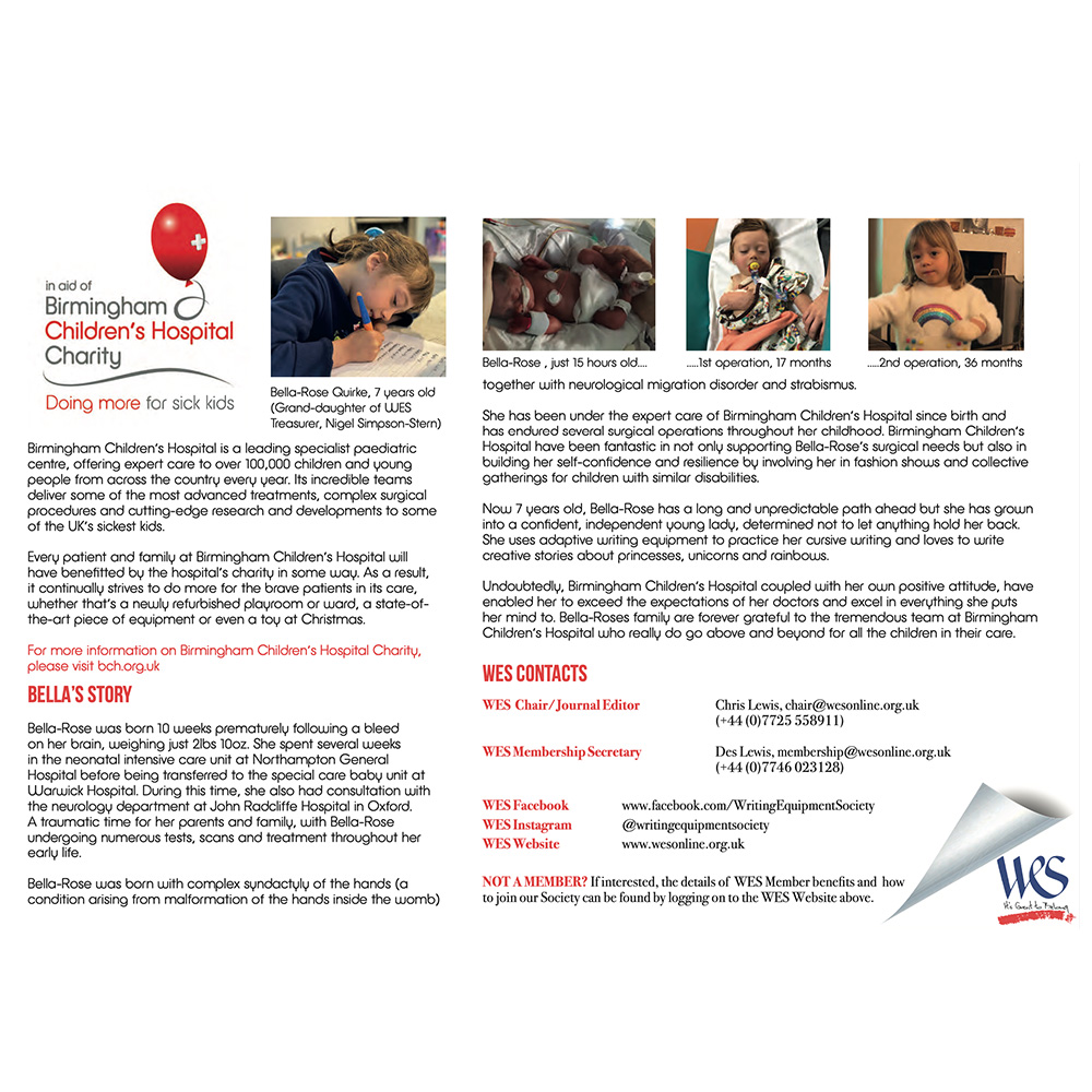 The reason for selecting Birmingham Children’s Hospital Charity as this years beneficiary is down to a very special young lady, Bella-Rose Quirke. Bella-Rose is the granddaughter of WES Treasurer, Nigel Simpson-Stern and we are delighted to support Bella-Rose and all the other children who are benefitting from the services of the BCH and BCHC.