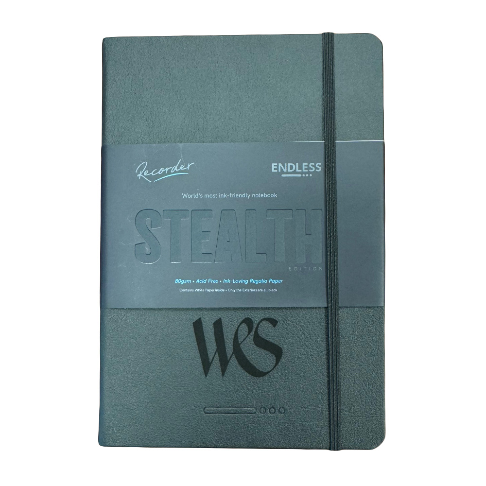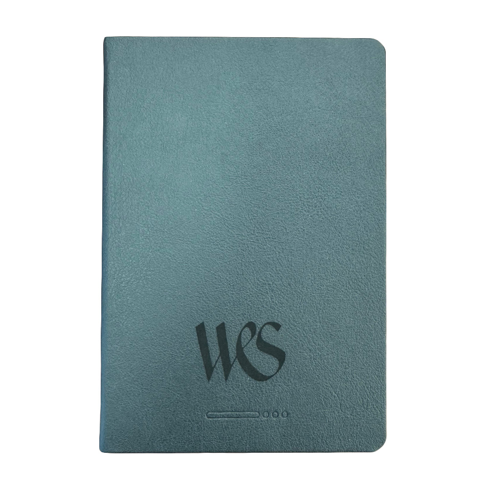 This elegant A5 size leatherette notebook has the WES logo on the front cover and is produced by Endless Stationery in India.